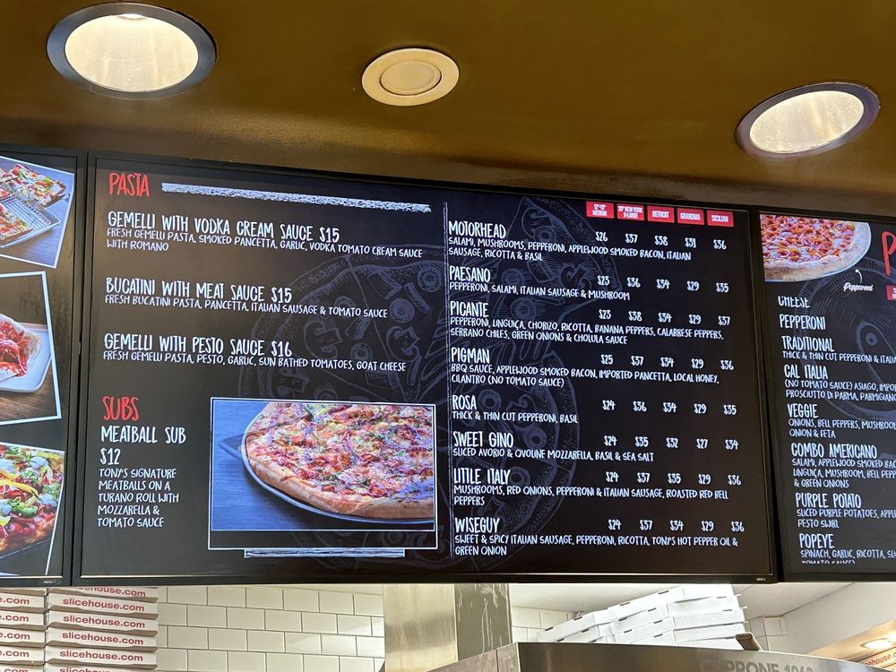 Introducing Slice House by Tony Gemignani, a haven for pizza enthusiasts in Walnut Creek, CA. This Italian pizza spot offers a wide range of options, from BBQ Chicken Pizza to Burrata Queen Pizza, catering to every taste. The menu also includes a variety of salads like Bacon Arugula and Caesar, as well as enticing antipasti such as BBQ Wings and House Made Calabrese Sausage. The dedication to quality and authenticity shines through in every dish, as customers rave about the fresh ingredients and perfectly balanced flavors. The casual yet inviting atmosphere, coupled with top-notch customer service, makes dining at Slice House a memorable experience. Whether you're grabbing a quick slice or sitting down for a full meal, you can expect nothing but excellence at Slice House by Tony Gemignani.